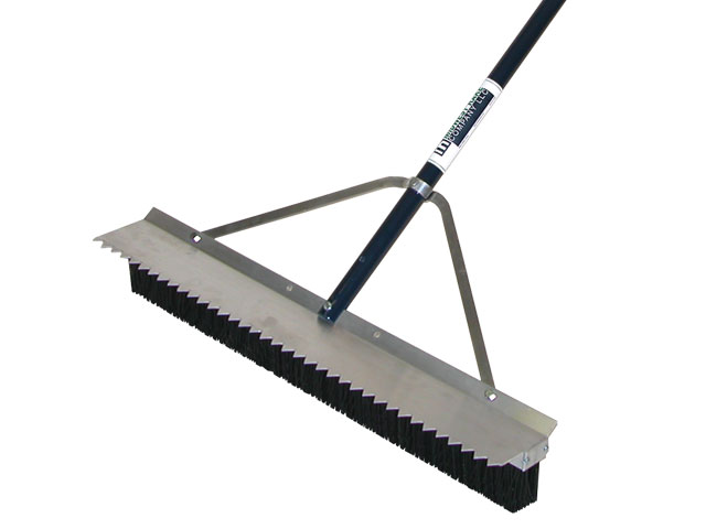 Features a 66 powder-coated aluminum handle with a 28 wide broom head with 3 bristles and row of short teeth for breaking up hard, dry clay.