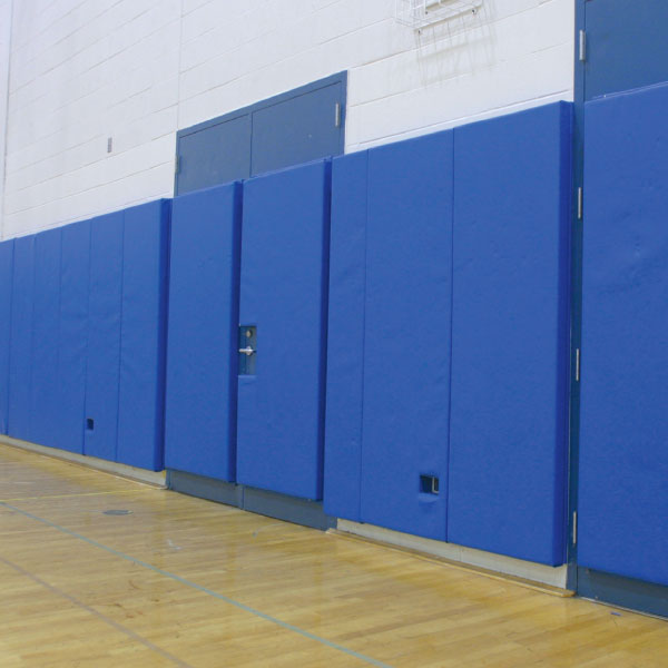 Our wall padding is designed to add safety while also creating a professional appearance in your gymnasium.  Padding is manufactured with 7/16″ OSB wood backing, 2″ bonded foam, and covered with 18 oz. fire retardant vinyl which is anti-bacterial and anti-fungal.  Material is completely wrapped around panel on four sides and fastened to the back of the panel.  One-inch lips are furnished at top and bottom for installation purposes.