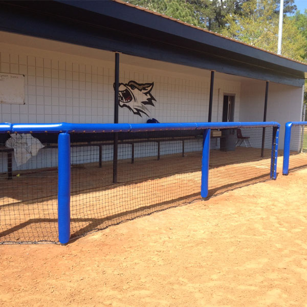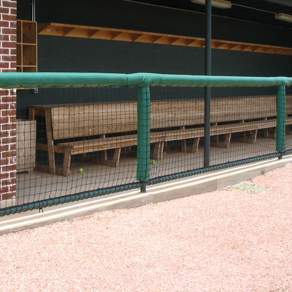 Our Dugout Nets are constructed of #36 (320-lb. break strength) treated nylon netting (black) with a 1-7⁄8”square mesh.  Netting is hung on the square for minimal sag, which creates a more professional appearance than diamond mesh netting and is also easier to install. Nets come rope bordered with a strong 3⁄8” twisted poly rope that is sewn into the net (not laced) for easy hanging.