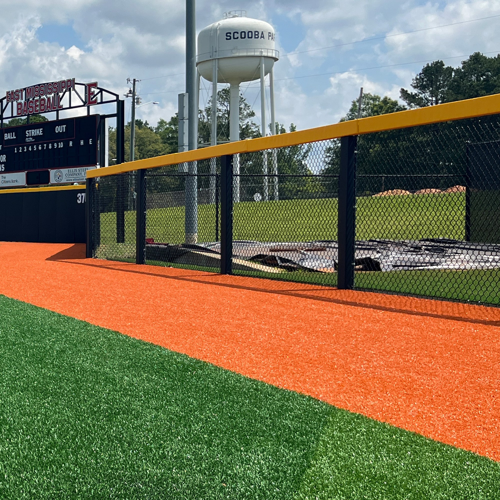 These premium fence rail pads provide a distinct and professional appearance in addition to providing safety for players. Pads are manufactured using 3” thick high-density foam cores. They are covered with 18-oz. vinyl and are attached with tie wraps through grommets. Sold by linear foot.