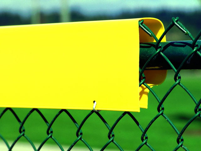 Flat-sided Safety Top Cap enhances field appearance, protects players from injury, and helps outfielders when approaching fences.  Manufactured using HDPE plastic with UV stabilizers.  Easy-to-install design measures 2-5/8″ W x 5-1/2″ H x 8′ L.  Includes hog rings for secure attachment.  Sold in boxes of 40 ft. (contains 5 pcs. – 8′ L.). Color is Yellow.